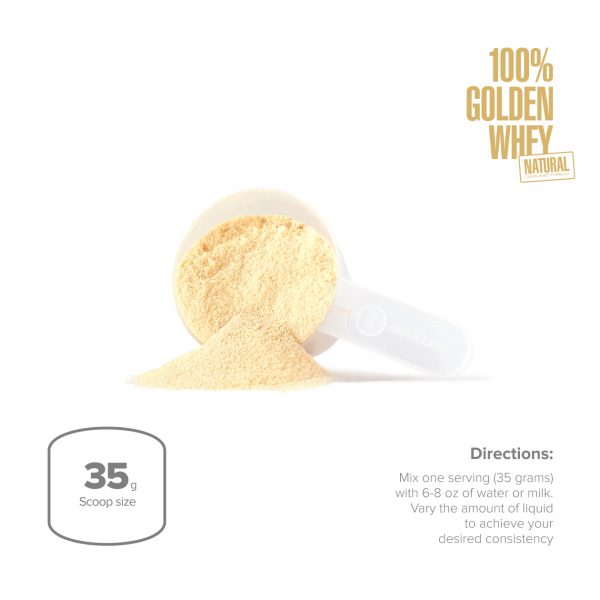 100% Golden Whey Natural is a useful addition to a healthy diet being 100% naturally sweetened and flavored. Short ingredient list of the 100% Golden Whey Natural makes it a perfect choice for health-conscious consumers.
