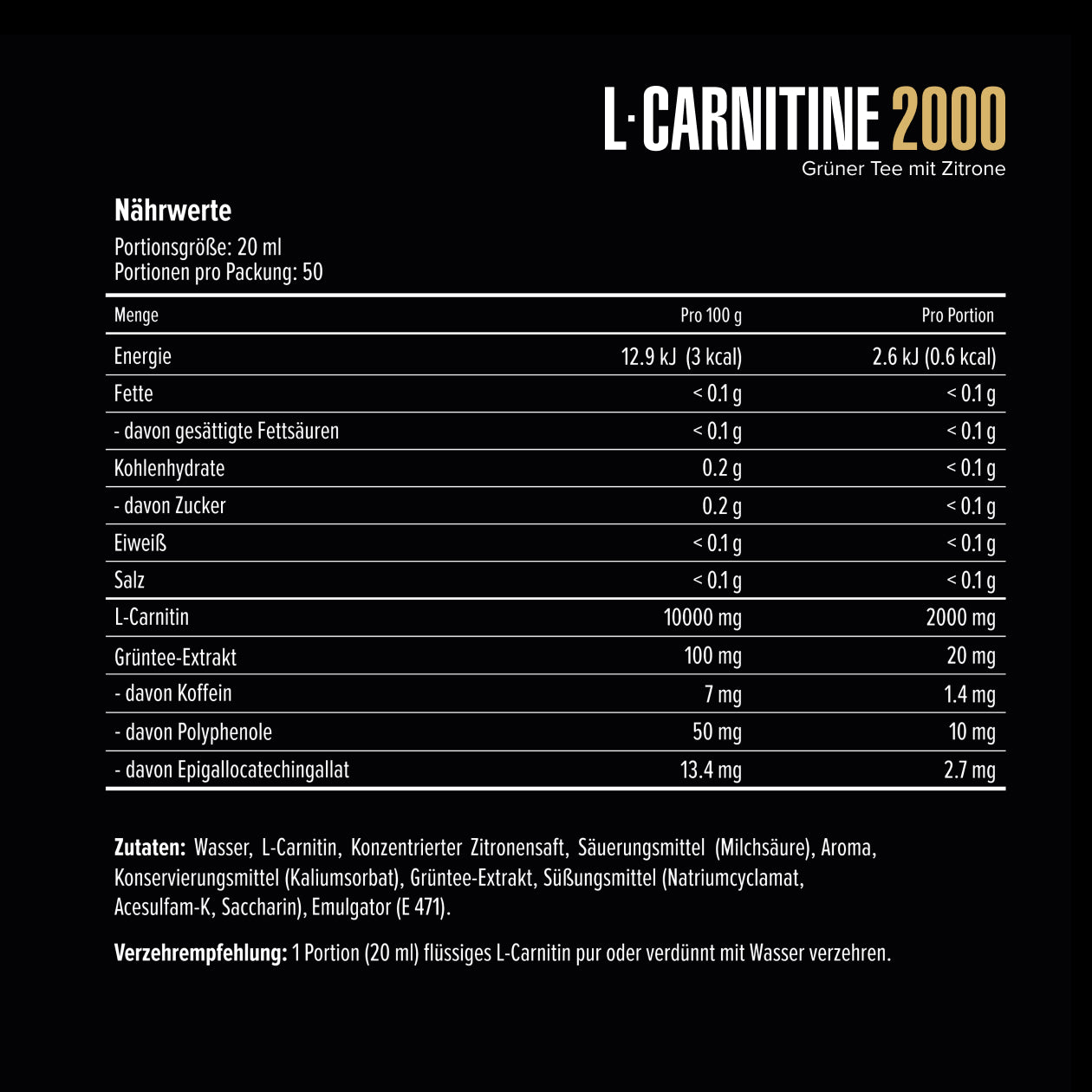 - 2000 mg of L-Carnitine per serving